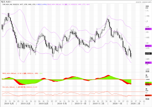 澳元兑美元波动性有所增大,上周五非农夜,美国最新公布的就业报告显示,美国上月非农就业人口增加22.5万人,高于预测值16万。但,焦点无疑是武汉爆发的新冠肺炎病毒,市场对确诊病例涉及国家及疫情拐点十分关注,而澳大利亚经济对中国的依赖性毋庸置疑,因此近期澳元的走势主要取决于疫情的进展。目前看,在中国人民众志成城的努力下,非湖北病例在减少,一切向好的方向发展,因此,做多澳元似乎更加合理。技术面,澳元自0.6662展开反弹,RSI上扬,建议轻仓做多澳元兑美元,不宜重仓,目标0.6745,止损0.6670。