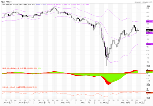 周二(5月5日),澳洲联储公布了最新的利率决议,维持目前的政策设定不变,包括现金利率目标和3年期澳大利亚政府债券收益率25个基点。在货币政策声明中,澳洲联储预计第二季度通胀率暂时转负。基准情景是2021年通胀率在1-1.5%。澳大利亚经济正经历非常困难的时期。预计基准情景是,失业率在未来10个月内达到峰值。基准情景是,2020年上半年GDP将下降约10%。2020年GDP增速将同比下降6%。澳洲联储下调经济预期拖累澳元,稍稍令澳元承压出现回落。技术面来看,澳元/美元延续自4月底上升趋势的61.8%斐波位以来的上升势头,刺破200小时均线。但上述趋势的38.2%斐波位0.6450附近构成汇价阻力,然后是100小时均线所处水平0.6478。上述趋势的50%斐波位所处水平0.6410构成汇价U型反转的支撑,然后是关键斐波位支撑0.6370附近。如果汇价跌破61.8%斐波位,则空头占主导,将瞄准0.6330,然后是0.6280。