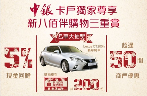 For every MOP300 purchased at New Yaohan with a BOC Multi-currency UnionPay Credit Cards or BOC Cards, the cardholder will be eligible to register for an entry to the Lucky Draw via BOC WeChat Banking for a chance to win prizes totaling over MOP650,000, including a Lexus and New Yaohan Shopping coupons.