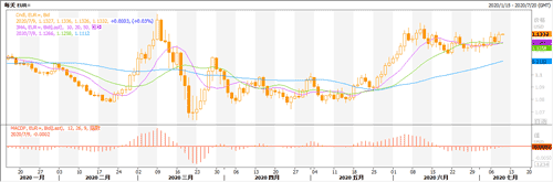 歐洲央行將2020年歐元區的GDP跌幅從7.7%調至跌8.7%,市場預期歐洲央行將在7月份會議維持現有的刺激力度,早前德國和法國同意出臺7500億歐元的復蘇基金計畫,加上近來歐洲對於疫情的防控相對好於美國,同時近期歐洲經濟資料明顯改善,也繼續對歐元構成支撐。