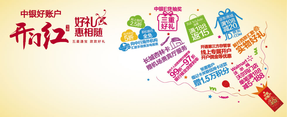 中国银行"中银E贷"客户在网银或手机银行上成功将E贷额度与借记卡关联,并通过POS刷卡或在线支付实现E货消费用款1000元(含)以上,即可参加抽奖送积分活动。