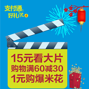 中行银联借记卡持卡人每周五登录蜘蛛网电影APP客户端,可享受15元/张的立减购票优惠,在"拍我呀"网站可享满60元减30元,在指定院线可享1元购爆米花的优惠。在2016年12月23日至2017年1月31日中行电影月期间,每周还可享15元看热门大片的优惠礼遇。