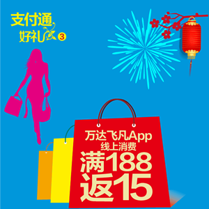 活动期间,使用绑定中行银联借记卡的飞凡通账户,在万达广场商户消费和飞凡APP消费单笔消费满188元可获15元现金返还。