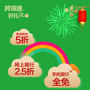 专属价格,优惠多多:"汇款手续费+电讯费"较普通跨境汇款享受网点柜台5折,网上银行2.5折,手机银行免费优惠。