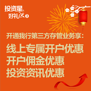 客户在中银国际证券等重点券商开户并开通我行第三方存管业务,即可享受线上专属开户优惠、开户佣金优惠、投资资讯优惠等权益。