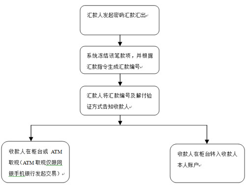 个人密码汇款是我行依托金融科技创新而推出的全新汇款方式,是中银易汇品牌下的明星产品。客户持本人借记卡/存折通过我行柜台、网银、手机银行、中银自助通(凭卡)将一笔款项汇给指定收款人,设定汇款解付验证方式(包括凭“密码”、凭“手机验证码”或凭“密码+手机验证码”),通过自行将汇款编号(银行系统生成)和指定验证方式告知收款人,收款人即可凭汇款编号和指定验证方式至我行办理收款。