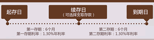 3. 本促销包含两个存期:第一存期和第二存期,分别对应第一存期利率和第二存期利率。第一存期到期后,按客户的选择续存至第二存期可享有第二存期利率。
