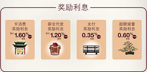 - 在当月您仅需满足卡消费奖励,代发薪奖励和支付奖励中至少一项奖励条件,便可享受年化0.60%的超额储蓄奖励;