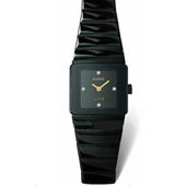 女式,方形外形,石英机芯,表壳直径21*21*4mm,防磨损蓝宝石水晶镜面,高科技陶瓷表壳,黑色表盘,黑色高科技陶瓷表带,折叠式表扣,防水深度30米。