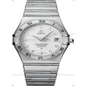 男式,Omega1120自动上链天文台机芯,镀铹表面,可储存动力44小时,圆弧形抗磨损蓝宝石水晶镜面,内部经防反光处理,精钢表壳,镶钻银色表盘,防水深度50米,表壳直径35.5mm,日期显示功能,获瑞士官方天文台论证。