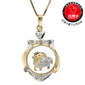 爱卡金牛生肖时来运转-黄白18K金钻石链坠