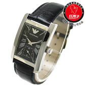 抛光不锈钢表身/阿玛尼原厂石英机芯/真皮鳄鱼压纹表带/弧形矿石抗磨损玻璃镜面/日常防水5ATM