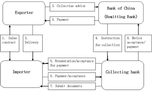 1. The exporter submits relevant documents to Bank of China for collection after preparation and delivery of goods.